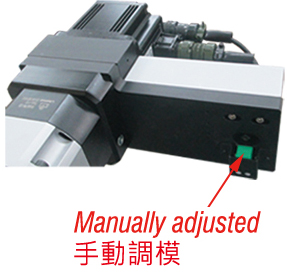 2. 端子壓著調模採電動手按微調及手動調模併用,手動調模插入把手即斷電,安全且避免因調模不良造成鉚刀損耗。