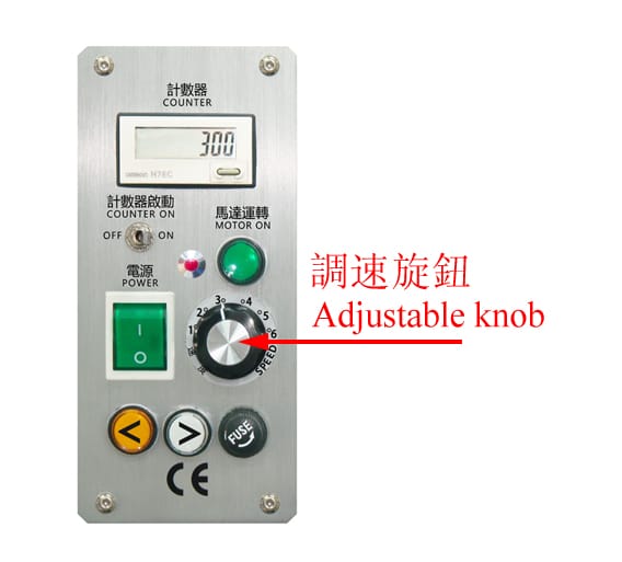 1. 本機採用大馬力伺服馬達驅動。視大小不同端子壓著速度可多段設定,調速旋鈕裝於面板上操作簡易又快速,顛覆傳統端子機單一速度,提升產能。
